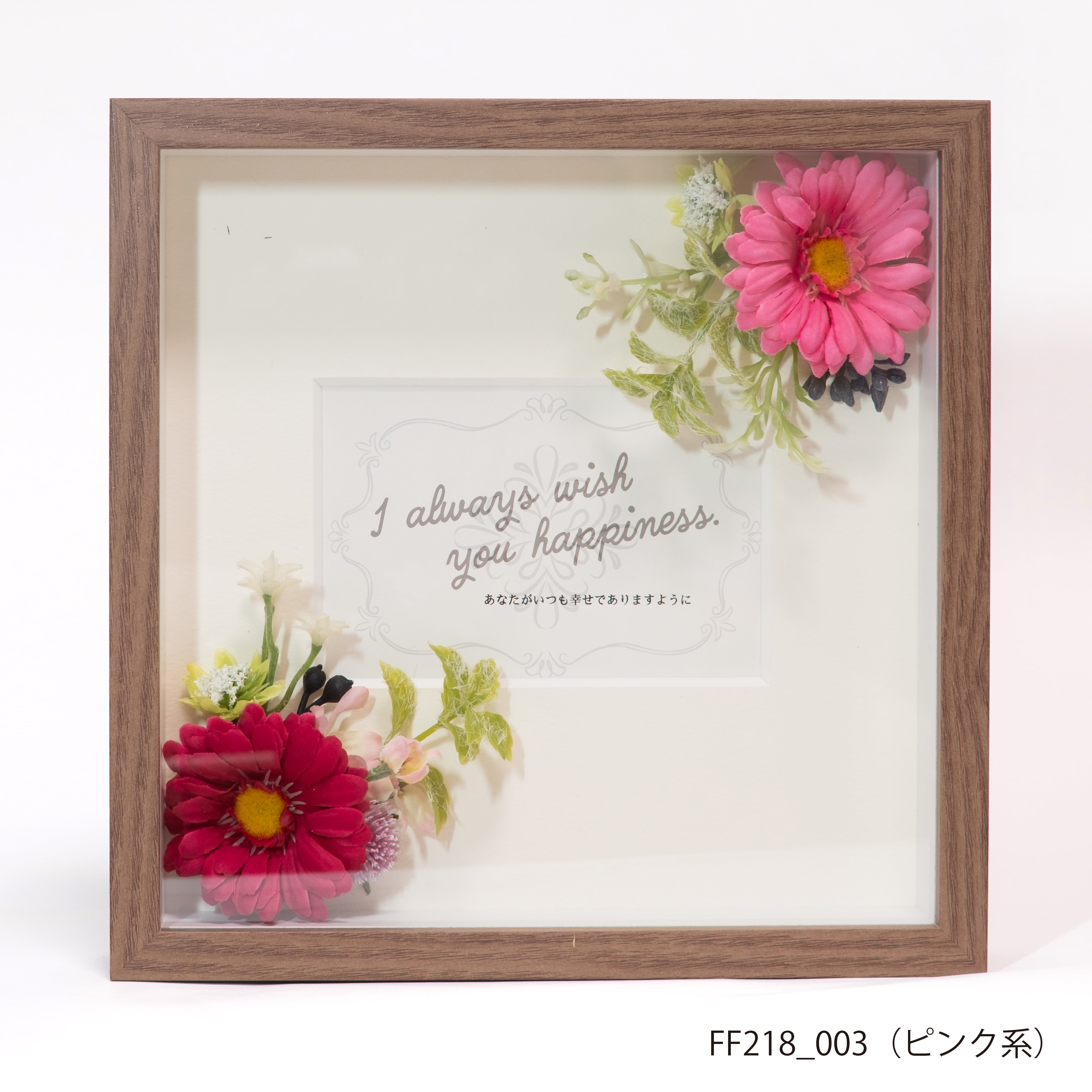 写真窓付きアイボリーカラーのフレームマットにフラワーアレンジがなされています。