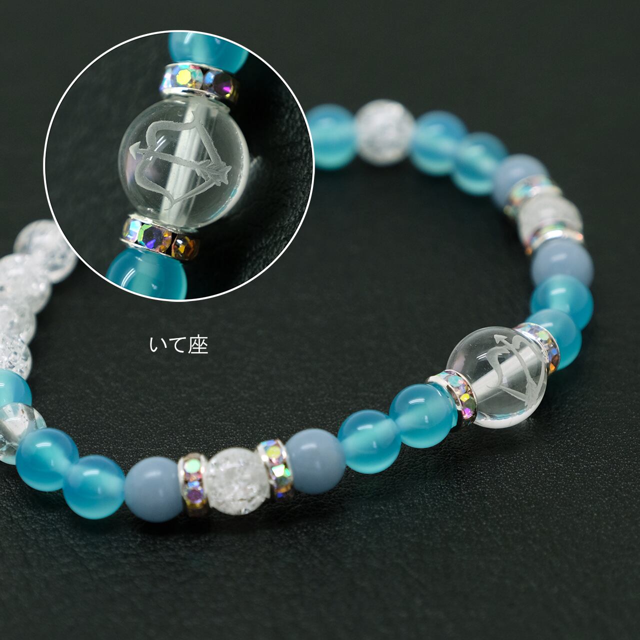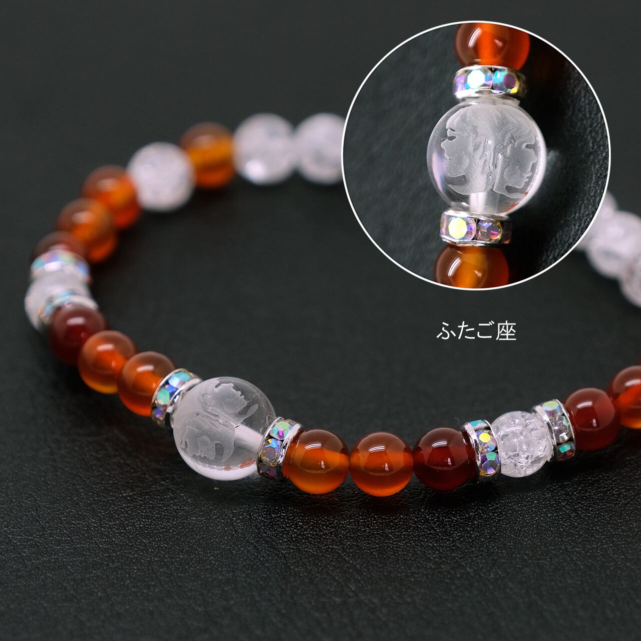 星座の彫刻が施された水晶と、星座のパワーカラーをイメージした天然石を組み合わせたブレスレットです。12星座をご用意しました。(なくなり次第終了です)