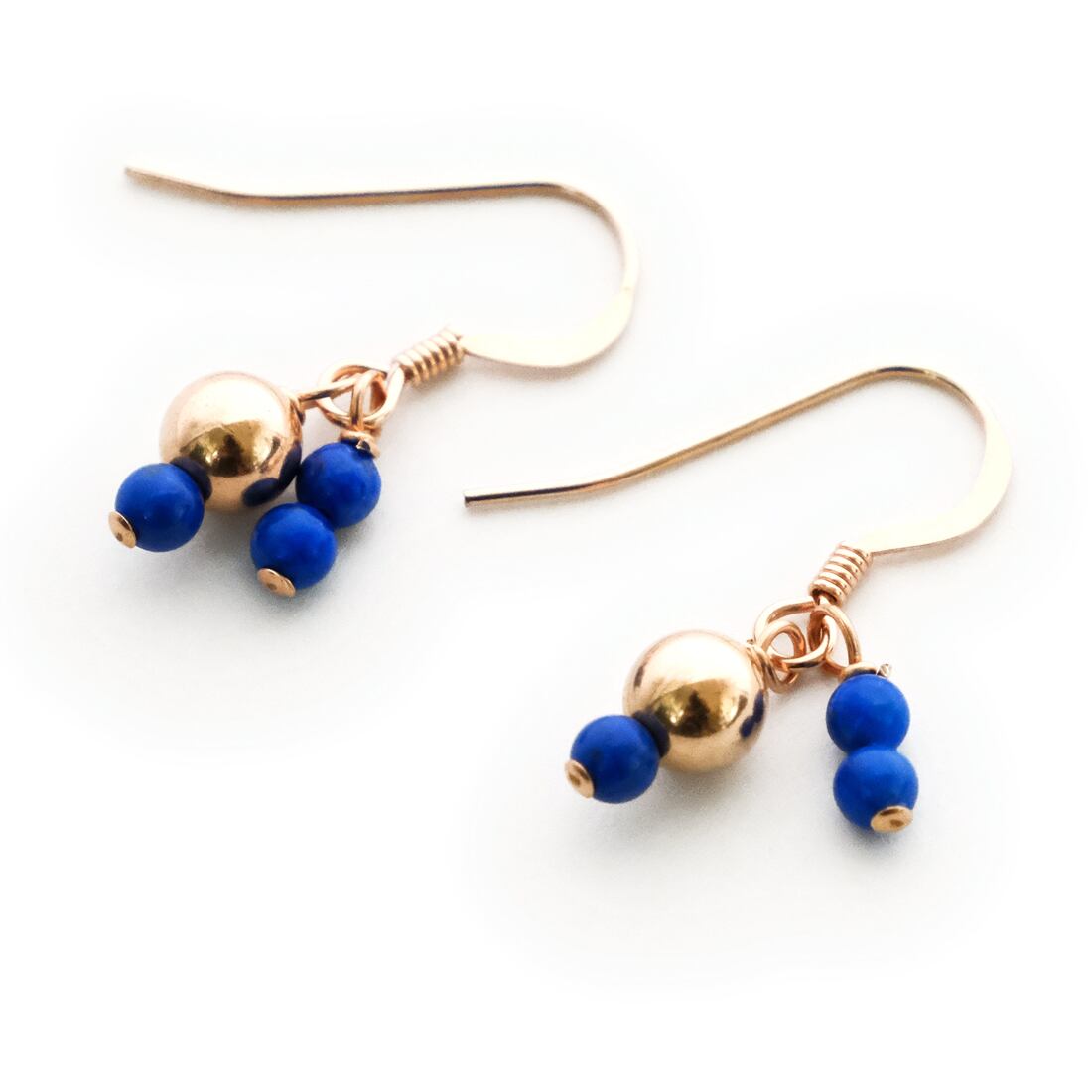 使用している素材/ラピスラズリ(瑠璃石)2mmラウンド、ピンクゴールドビーズ4mmラウンド、ピアスフック ※14金ゴールドフィルド