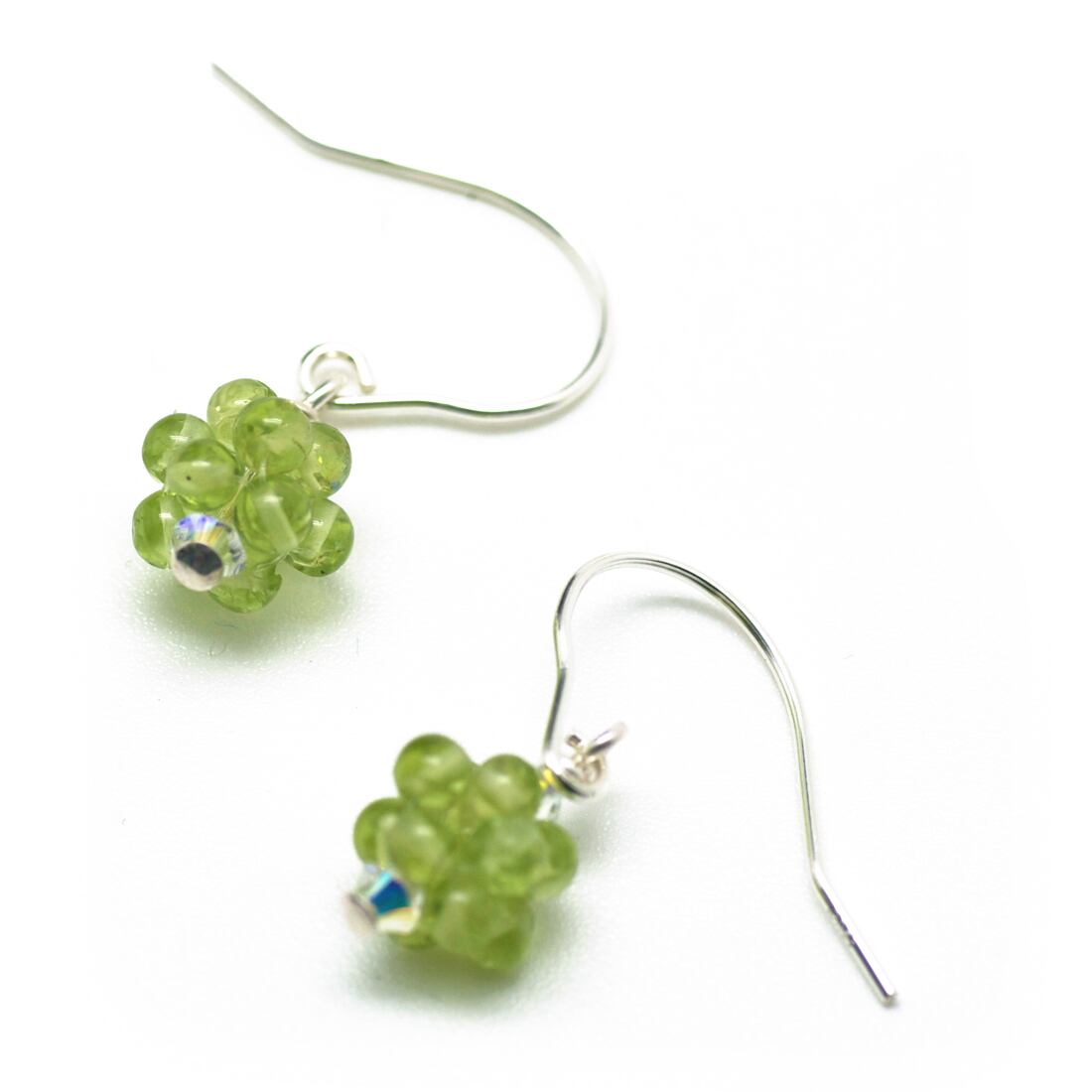 使用している天然石と主な素材/ペリドット(橄欖石/かんらんせき)2mmラウンド、スワロフスキー、ピアスフック