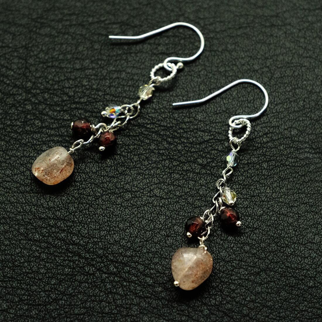 サンストーンとガーネットを組み合わせたロングピアスです。
