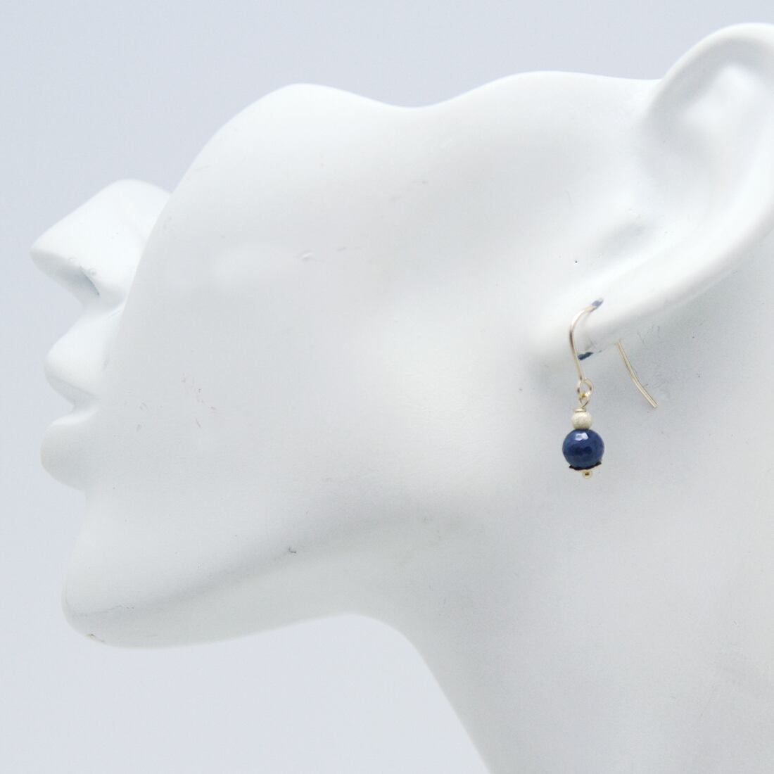カット面がキラキラ輝くサファイア6mmラウンドカットをポイントにしたシンプルなピアスです。