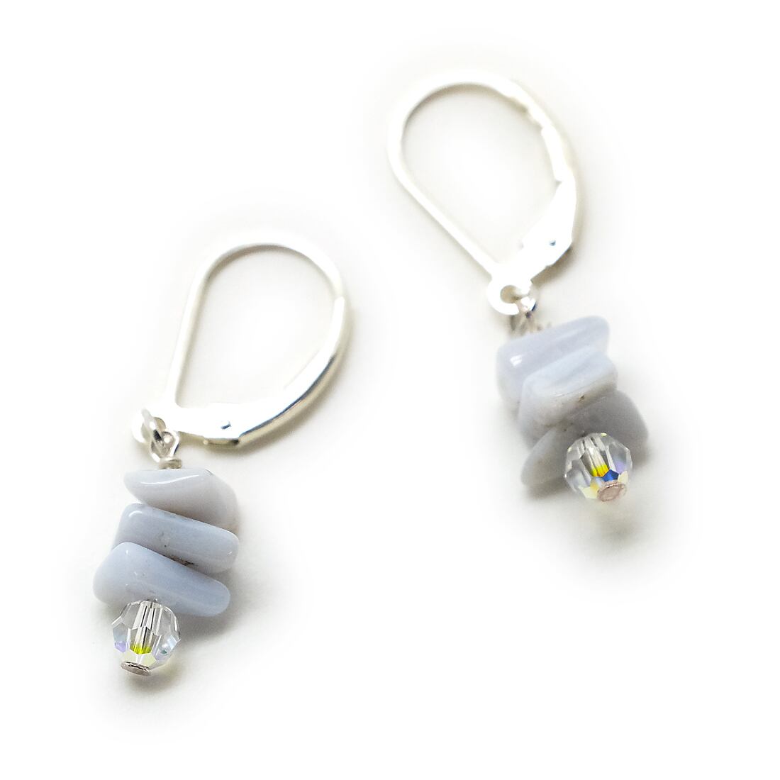 使用している素材/ブルーレース(空色縞瑪瑙)ミニタンブル、スワロフスキー4mmクリスタル、フレンチフックピアス ※シルバー925