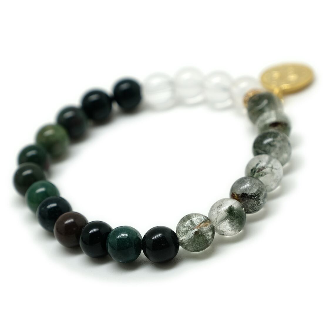 天然石ブレスレット/ガーデン水晶・ブラッドストーン他&コインチャーム