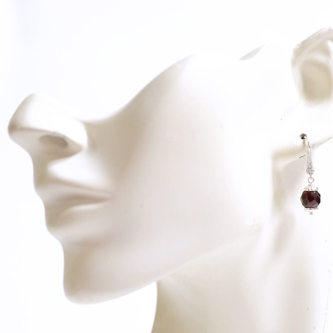 シルバーの花座が華やかな、ガーネットのピアスです。