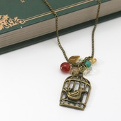アンティーク調チャームと天然石を組み合わせたネックレスです。