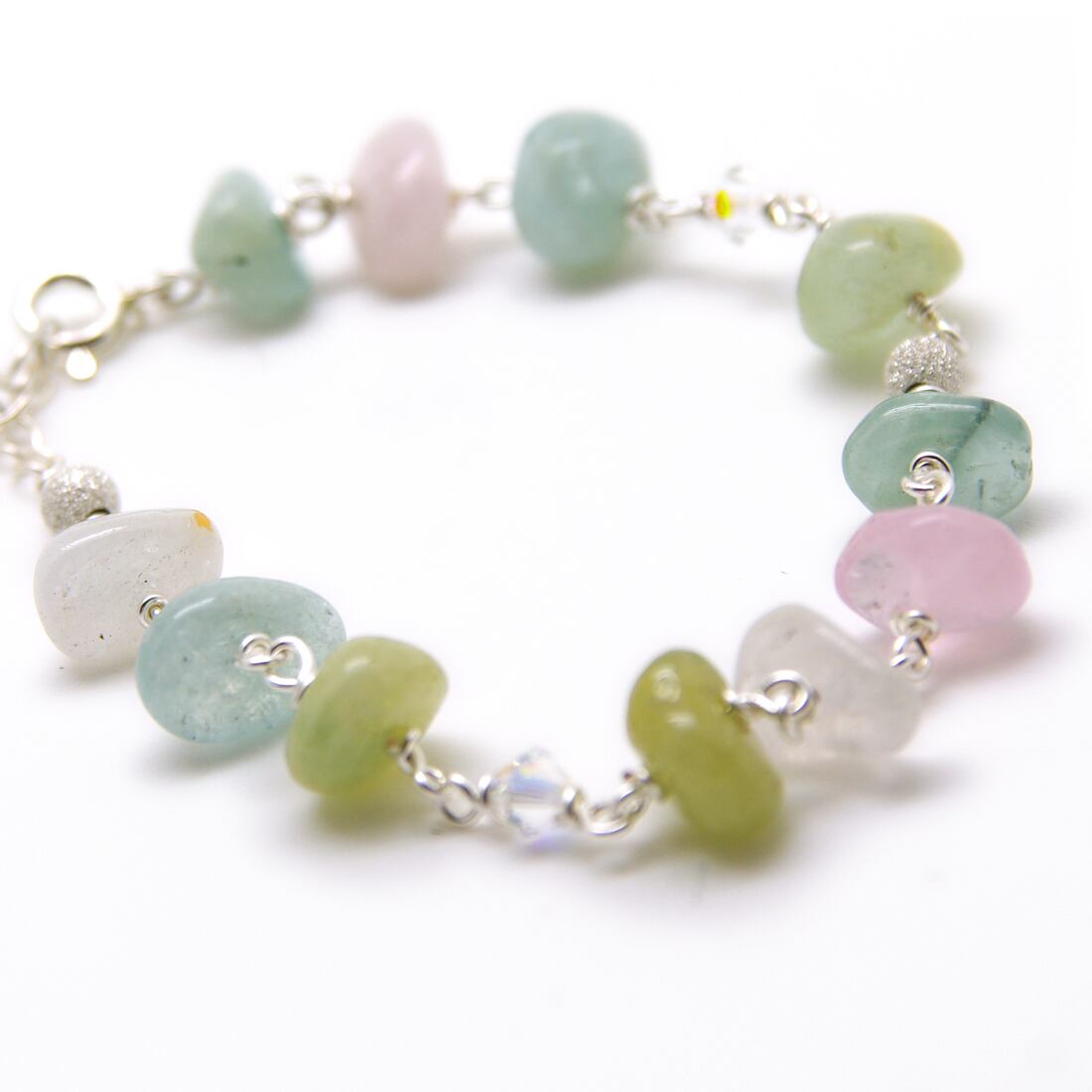 繊細でキュートなシャーベットカラーのベリル(アクアマリン・モルガナイト)を繋ぎあわせたブレスレットです。
