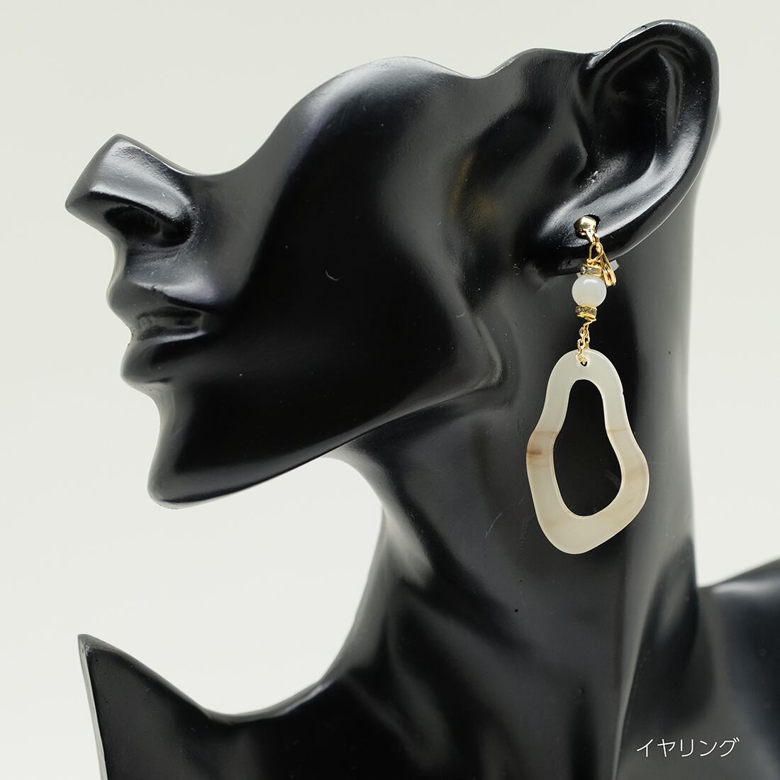 うっすらマーブル模様の入った変形ドーナツ形状の樹脂パーツと天然石を組み合わせたイヤリングorピアスです。(いずれかお選びいただけます)