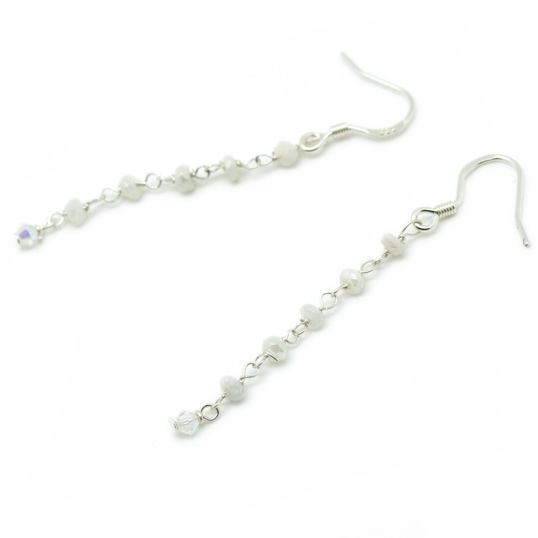 使用している天然石と主な素材/ホワイトシリマナイトボタンカット約3×2mm、スワロフスキークリスタルAB、ピアスフック