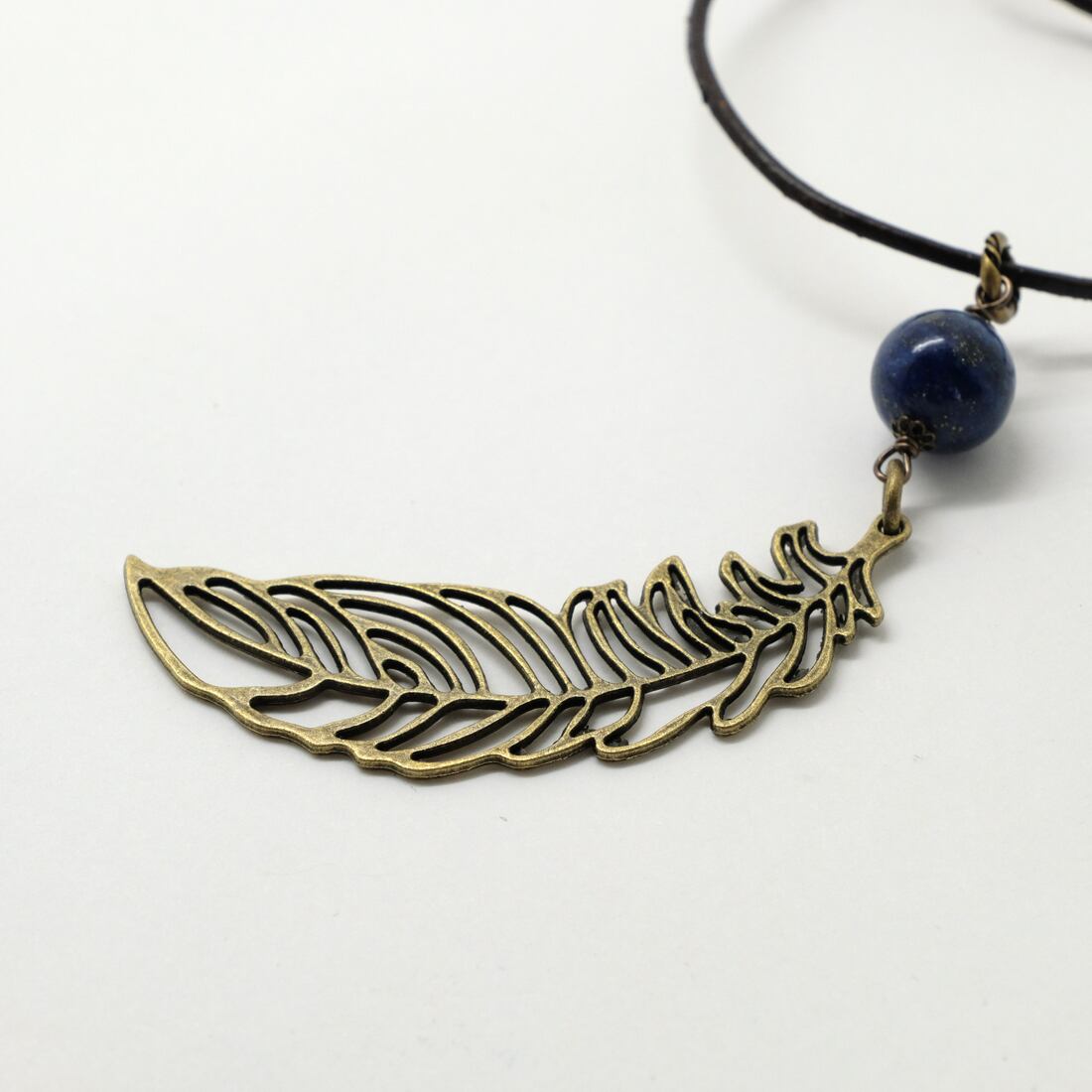 フェザーのメタルチャームとラピスラズリを組み合わせた紐ネックレスです。