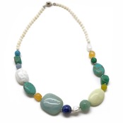 グリーン&イエローの癒しカラーを集めたマルチストーン天然石のヨーロピアンネックレスです。
