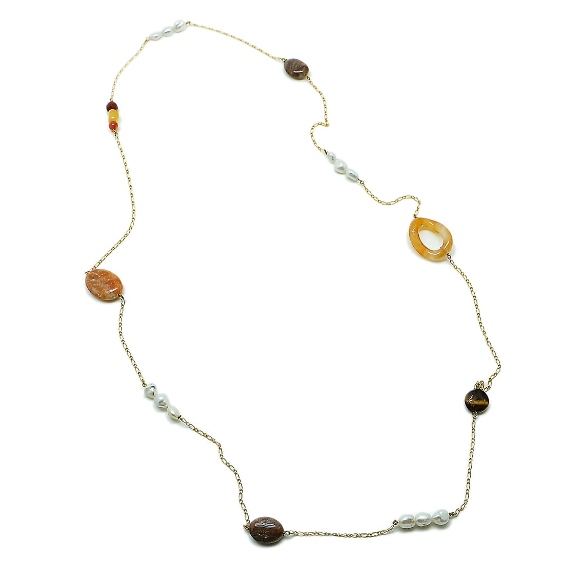マルチストーンのロングネックレス/オレンジ | UENCHS collection