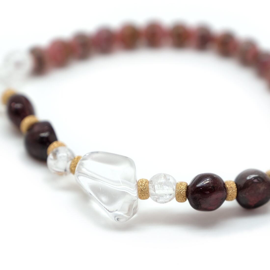 水晶とガーネット&インカローズを組み合わせたブレスレットです。