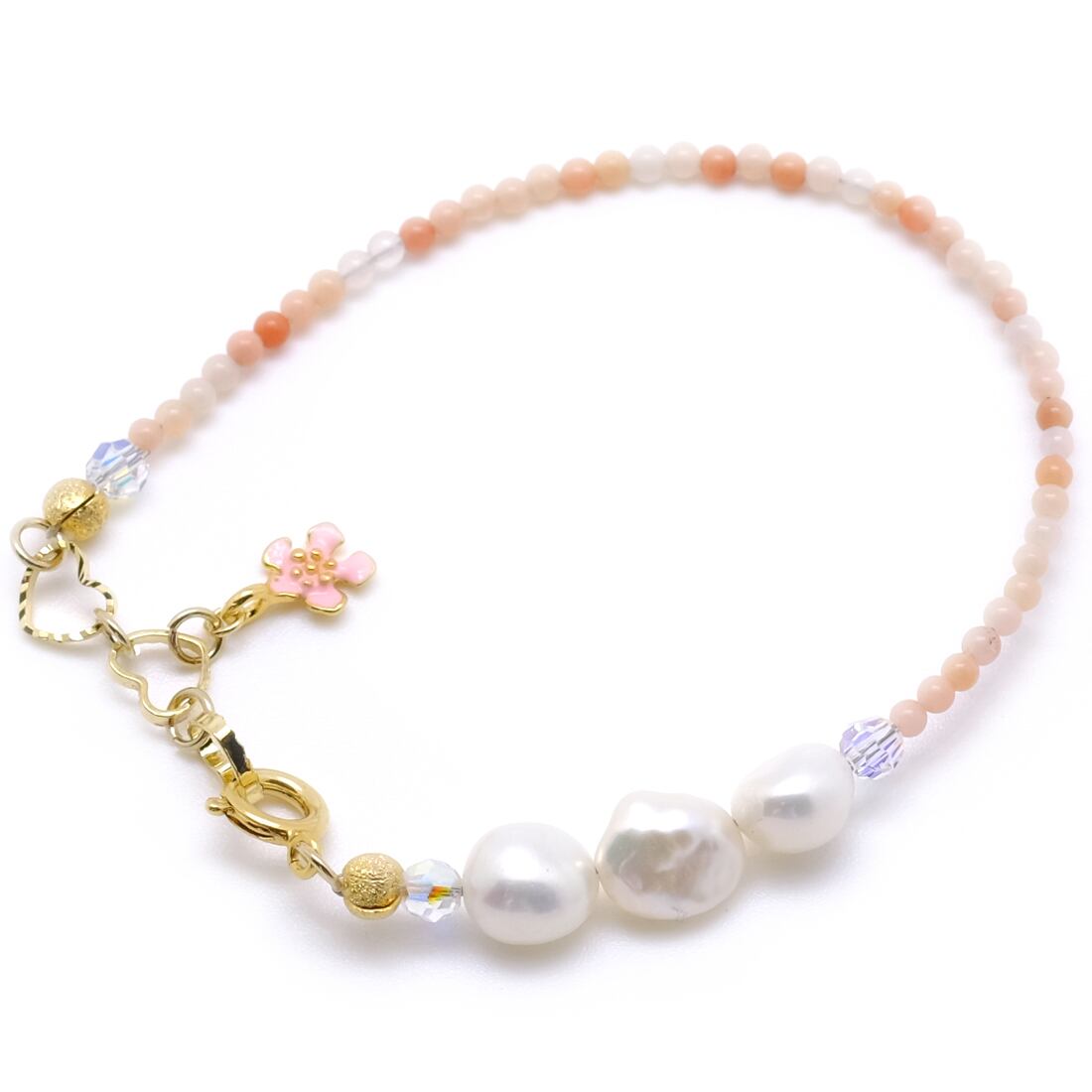 白からピンクの濃淡がキュートなコーラルとケシパールを組み合わせたブレスレットです。
