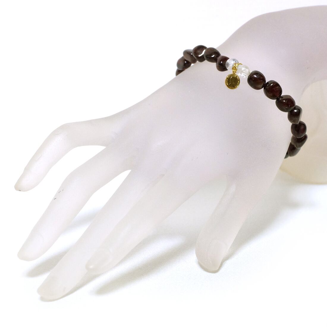 深紅のガーネットタンブルとコインチャームを組み合わせたヒーリングブレスレットです。