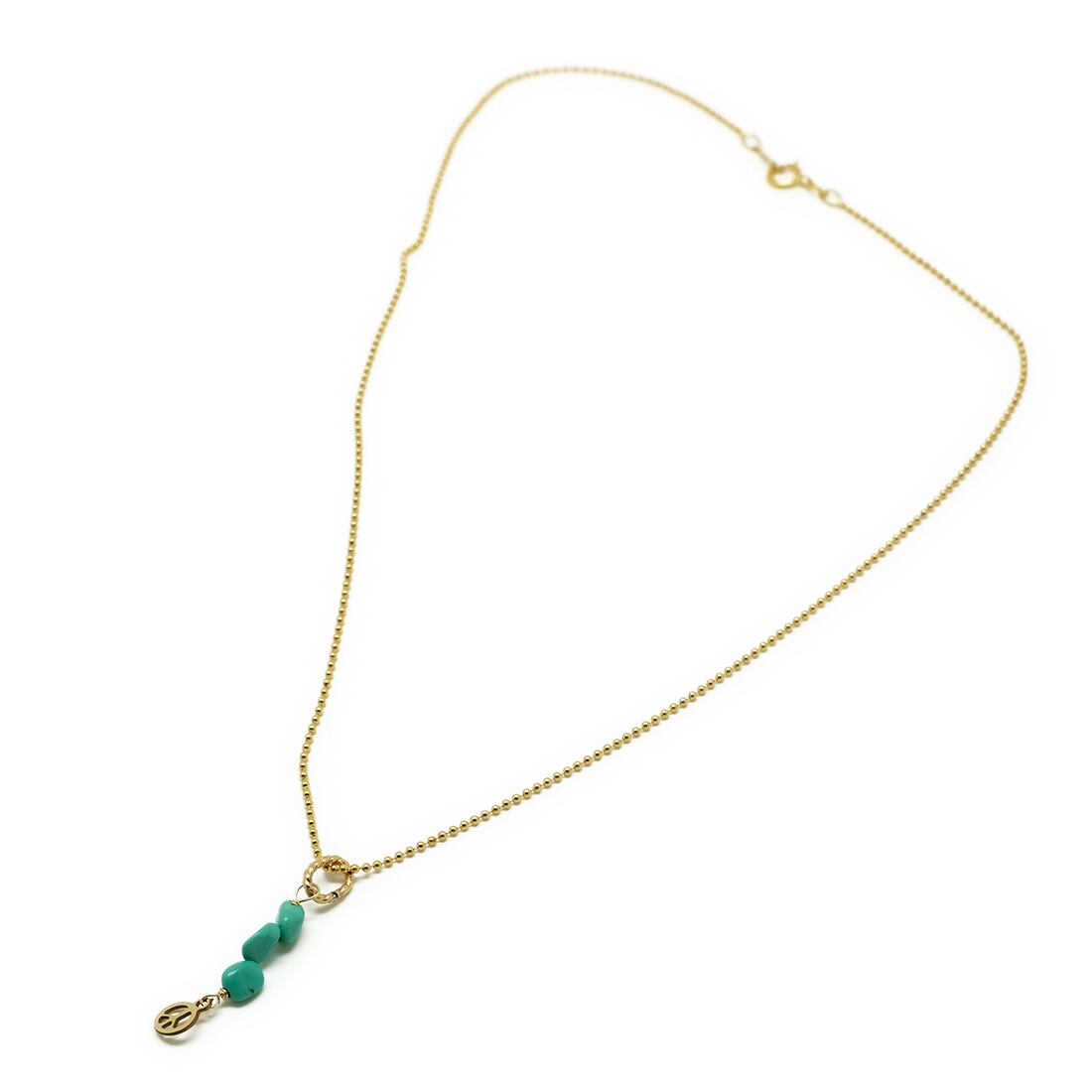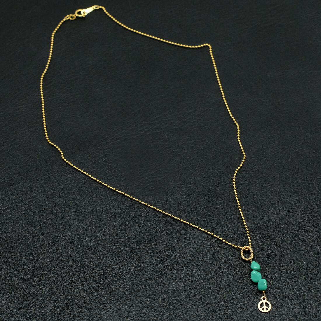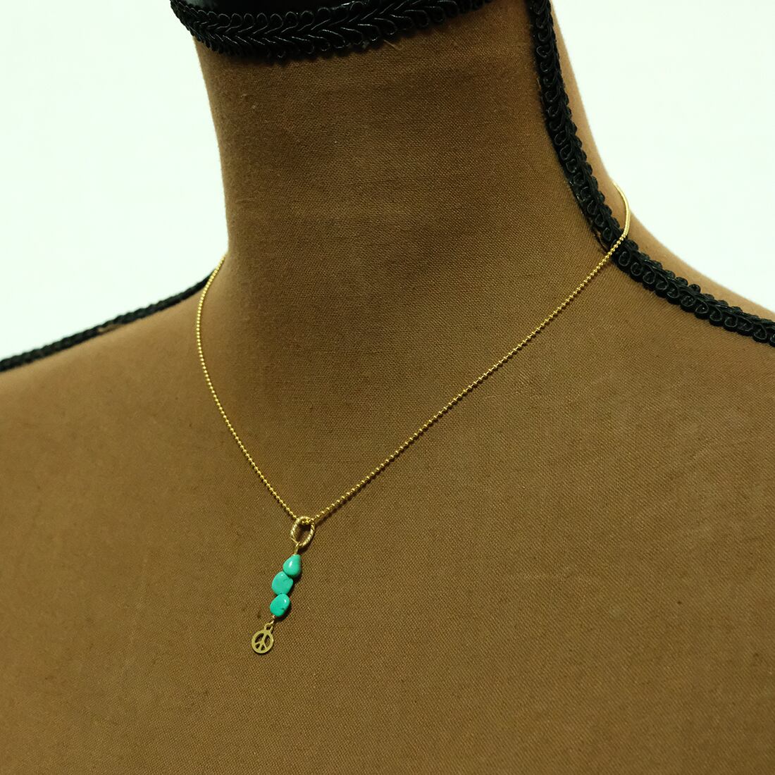 ピースチャームがポイント。ターコイズミニタンブルのペンダントトップです。