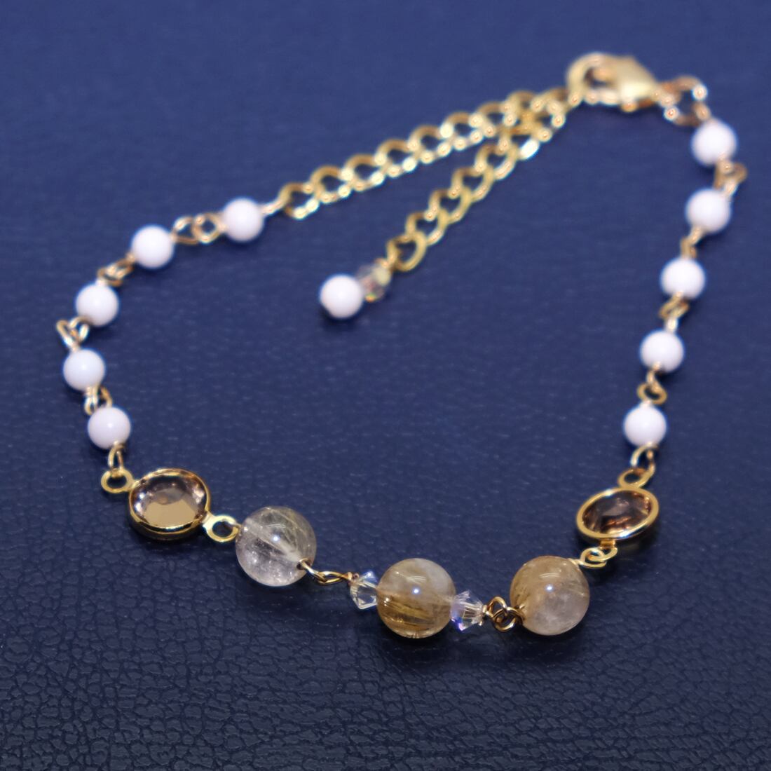 金糸が品良く含まれ味わい深いルチルクォーツとホワイトをオニキスを繋ぎあわせたブレスレットです。