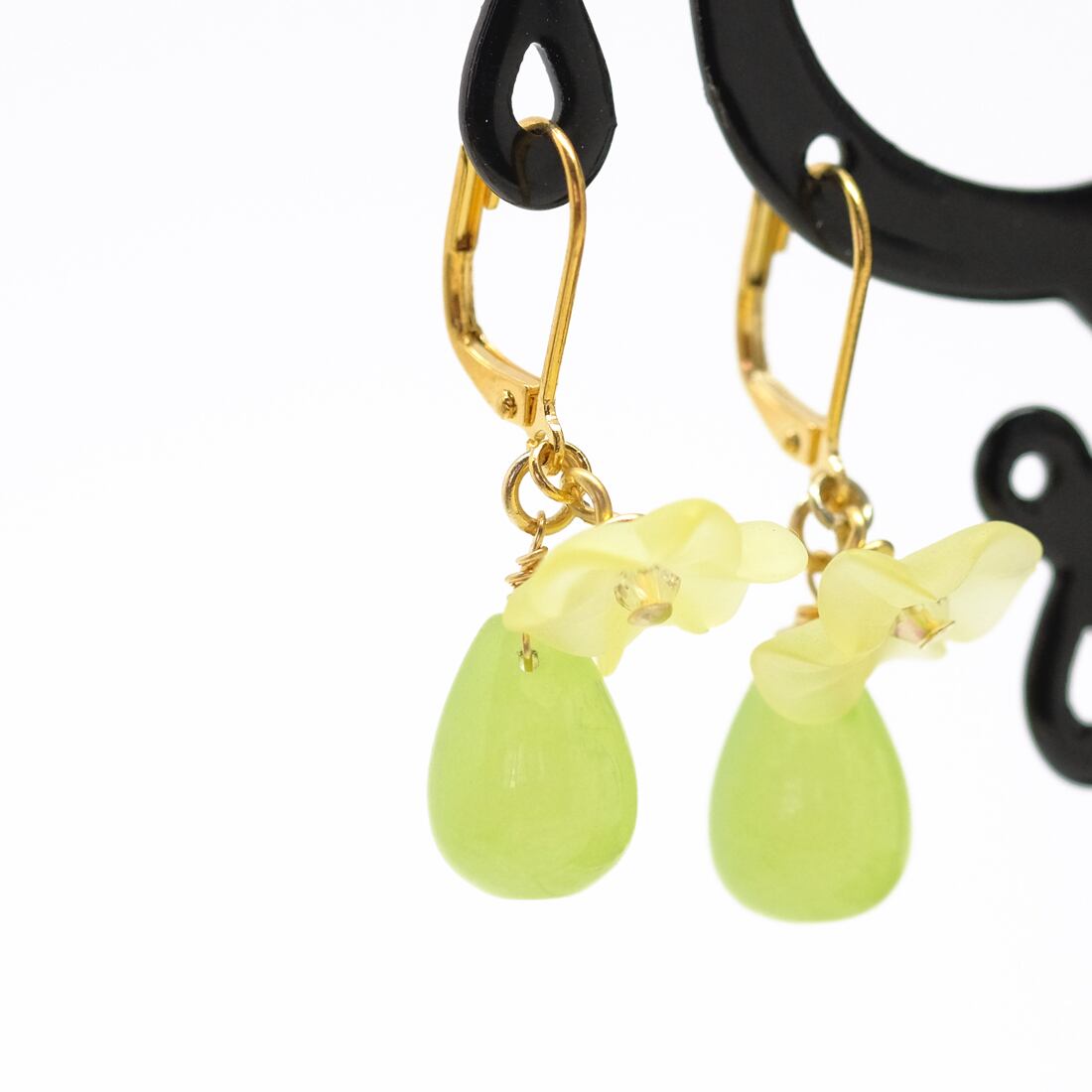 カラージェイドとプルメリアフラワーパーツのピアス/イエローグリーン&イエローフラワー