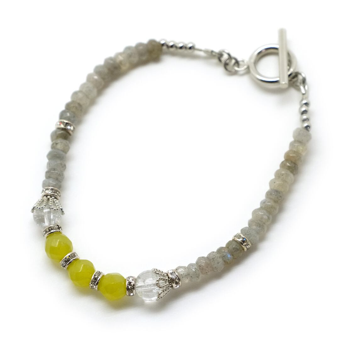 このブレスレットは、オリーブジェイドとラブラドライトが持つ神秘的な力をあなたに与え、あなたの魅力や可能性を引き出す、特別な1点です。