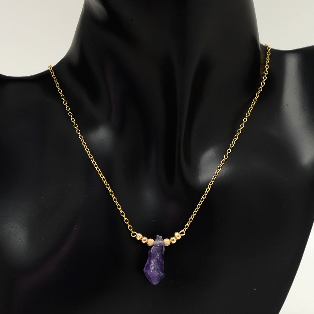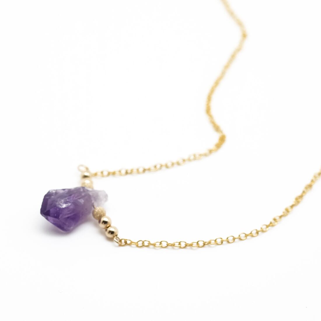 自然の力を感じるアメジスト原石のネックレスです。天然の原石を14KGFのチェーンと組み合わせることで、高級感とともに華やかさも演出してくれます。