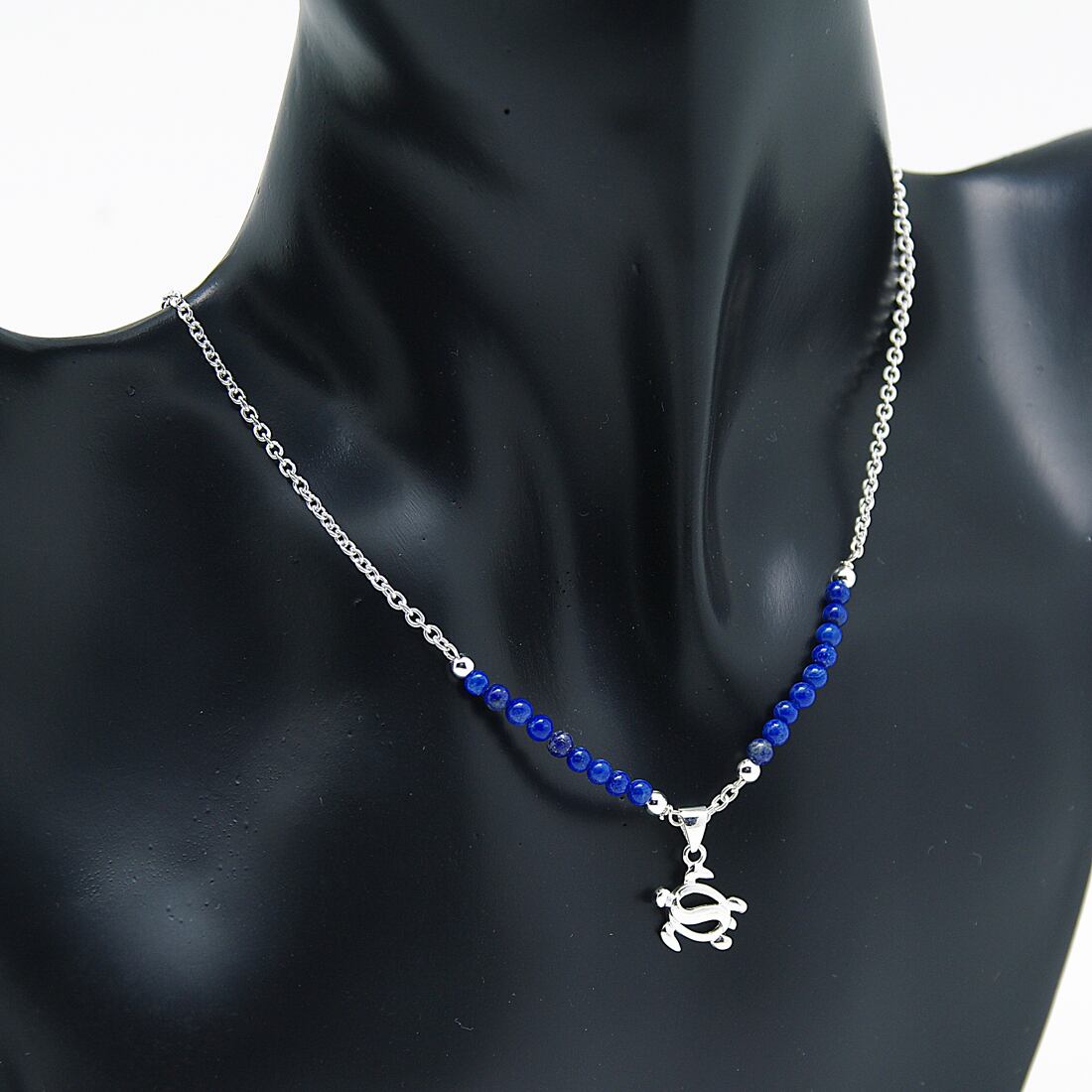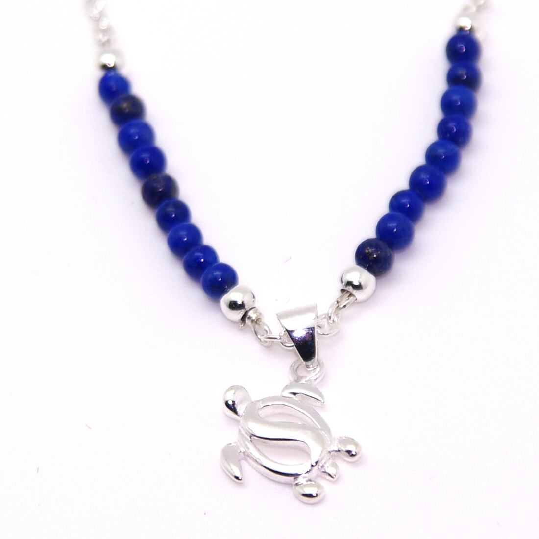 そんなホヌのチャームとラピスラズリを組み合わせたシルバーネックレスです。